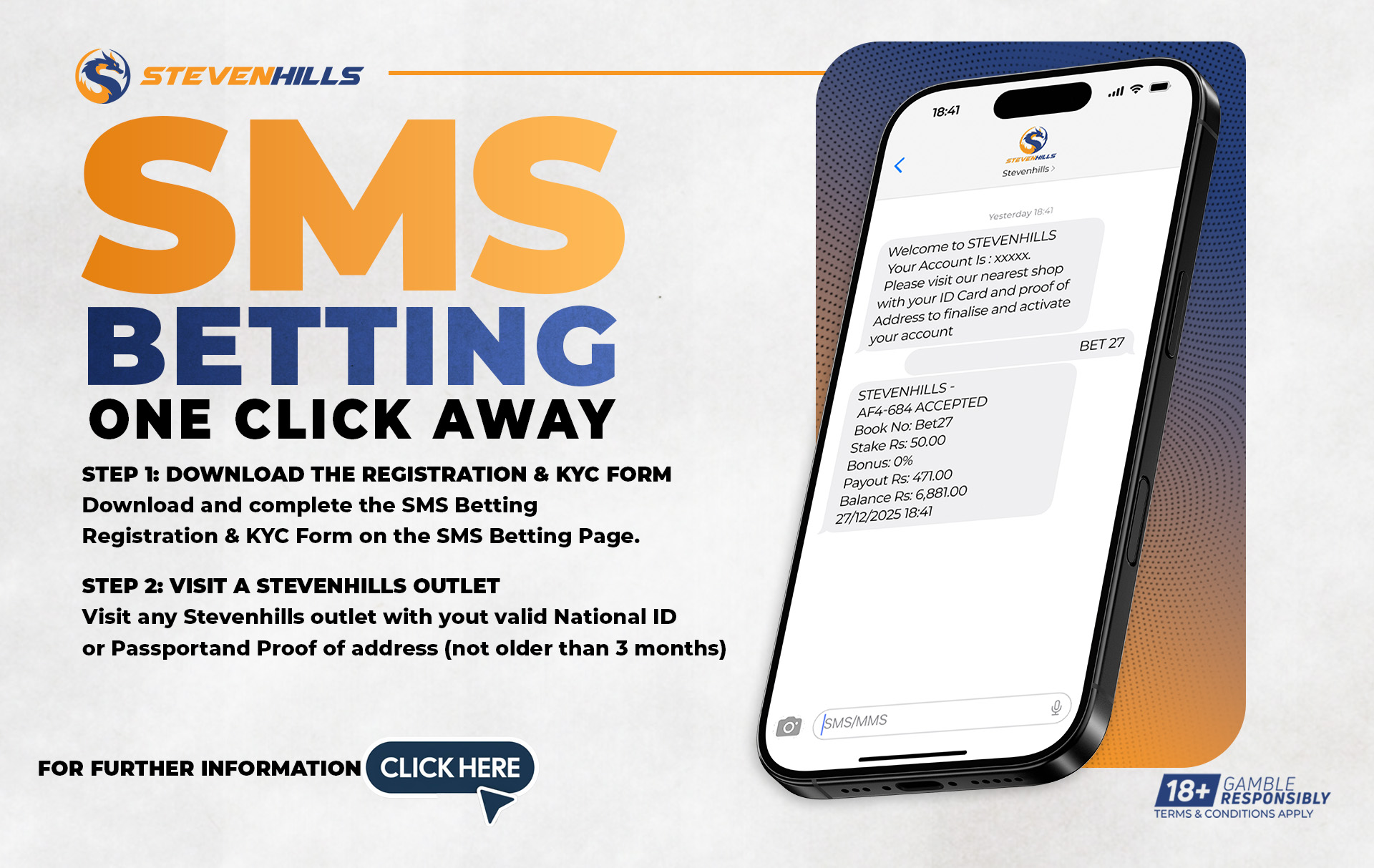 SMS Betting allows registered Stevenhills customers to place football bets directly from their mobile phone using SMS.